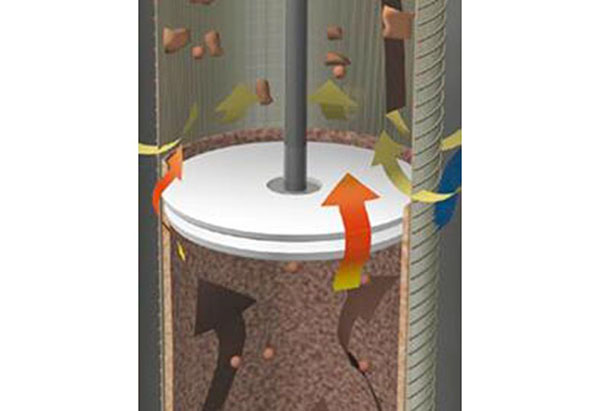 清洗閥打開,氣動(dòng)驅(qū)動(dòng)的活塞連同清洗盤一起進(jìn)入過濾器濾芯區(qū)域;清洗盤和濾芯之間的間隙中速度大幅增加會導(dǎo)致靜壓下降(伯努利效應(yīng)),在清洗盤的部分區(qū)域中,過濾器清潔側(cè)上的外部壓力高于清洗盤和濾芯之間區(qū)域中的外部壓力。再加上大大增加的流速,在過濾元件中產(chǎn)生“吸入效應(yīng)”。